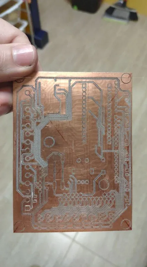 El acabado y aspecto de una placa pcb hecho con el método del "pcb milling", no puede ser comparable con el que se consigue con el atacado químico, porque estamos realizando surcos profundos donde se está eliminando gran parte de la baquelita, muchas veces en exceso, y es muy difícil hacerlo levemente y de forma proporcional.